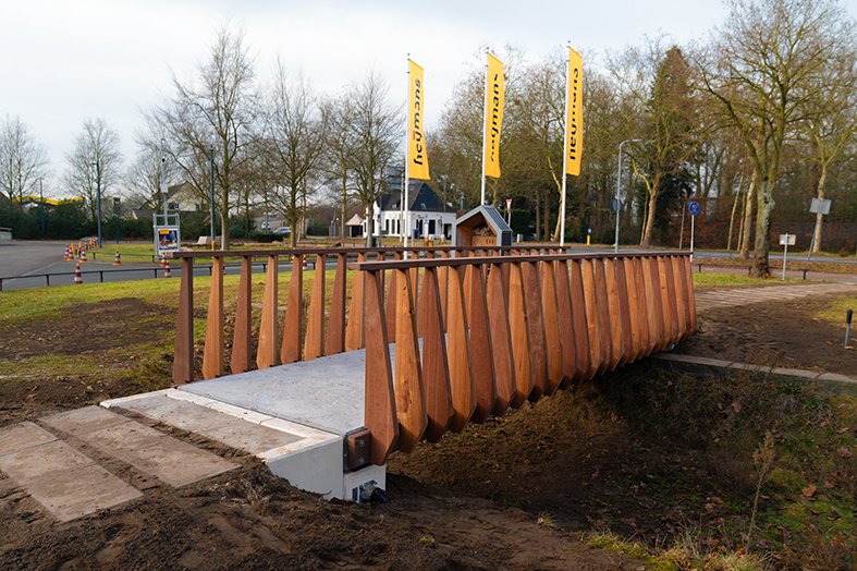A fabricante de materiais Paebbl e a construtora holandesa Heijmans instalaram uma ponte pedonal de 7 metros de comprimento em Rosmalen, na Holanda, que a equipe descreve como a primeira ponte do mundo construída com concreto neutro em carbono.